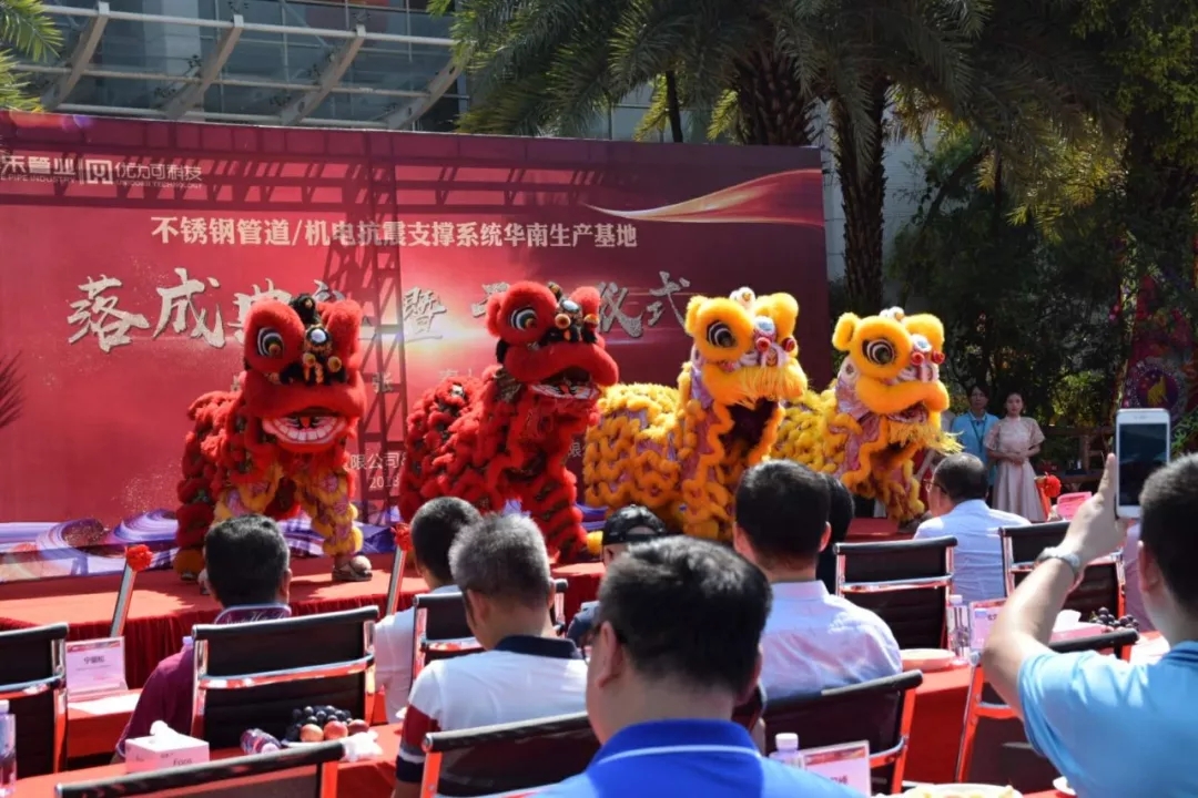 現(xiàn)場高朋滿座,在熱烈而隆重的儀式中,全體員工隊列整齊,更是志氣高昂、精神抖擻。儀式上,公司主要領(lǐng)導(dǎo)為華南生產(chǎn)基地的落成和開業(yè)剪彩,還進行了醒獅點睛、醒獅表演、航拍等各個精彩的環(huán)節(jié)。