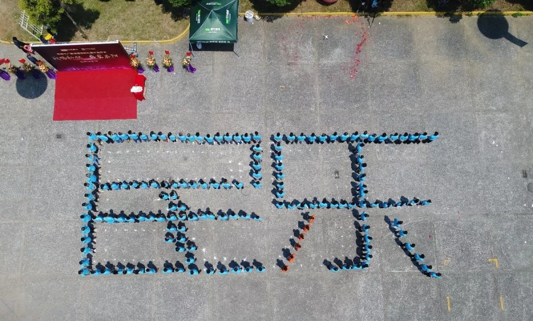 基地的員工們穿著統(tǒng)一,企業(yè)色彩錯落分明,組成“民樂”字樣整齊列隊,展示出斗志昂揚的精神風(fēng)貌。