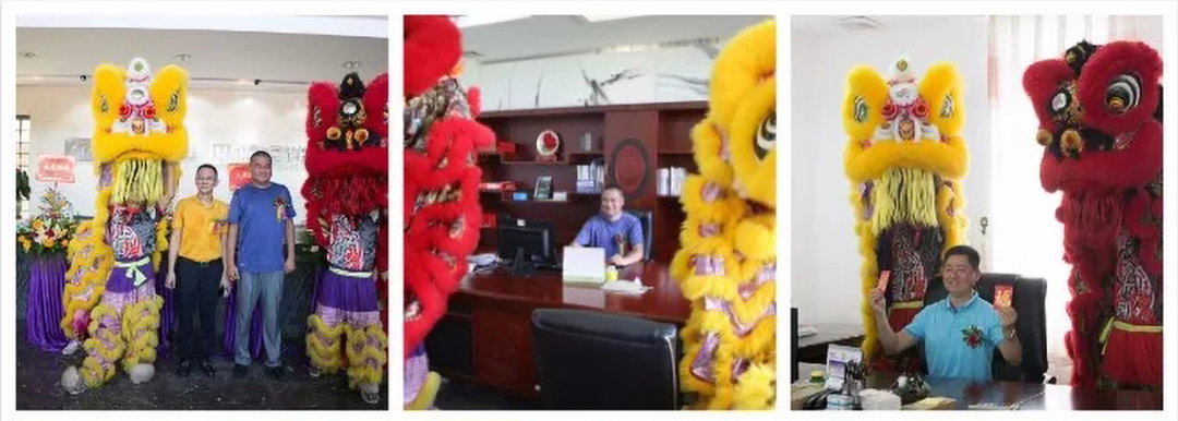 公司邀請到廣東頂尖的“佛山黃飛鴻舞獅隊”帶來吉慶的表演,或左右騰挪,或上下翻舞,金獅生靈活現(xiàn),朝氣喜人;板凳和高桿表演更是引人入勝,采青、接青,祝福從天而降,寓意海納百川!財源廣進!