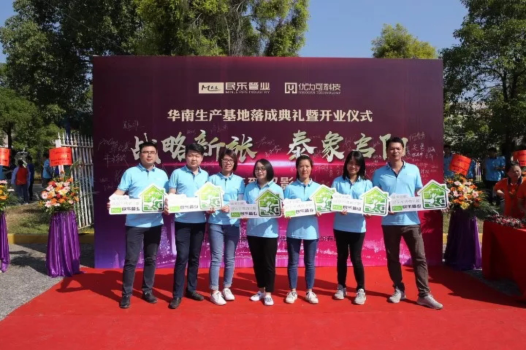 公司董事長麥海東先生、董事麥穩(wěn)球先生、麥樹威先生與在場500多位嘉賓和員工一同舉杯,共祝民樂管業(yè)及優(yōu)力可科技擁有更美好的發(fā)展前景!恭祝新張大吉!